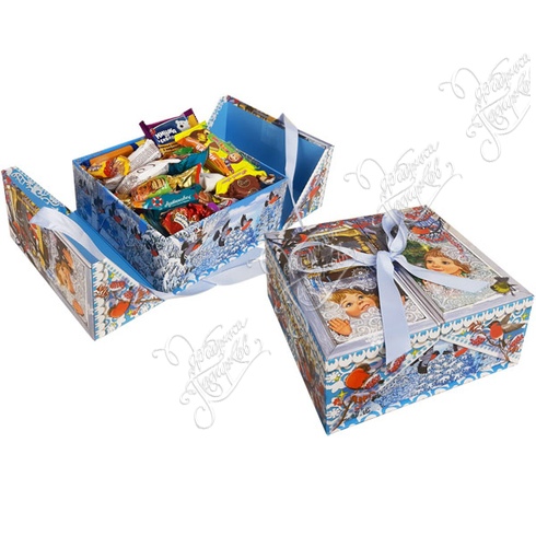 Футлярный картон. Подарок упакован в красочныйпакет с новогодней символикой.